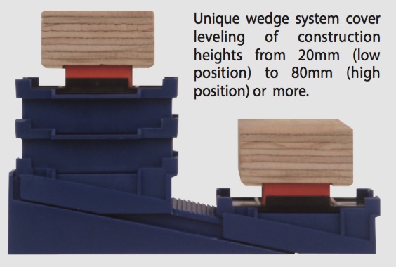 Unique integrated leveling component to overcome challenges on uneven sub-floors to meet specific construction height and reducing installation manhours.