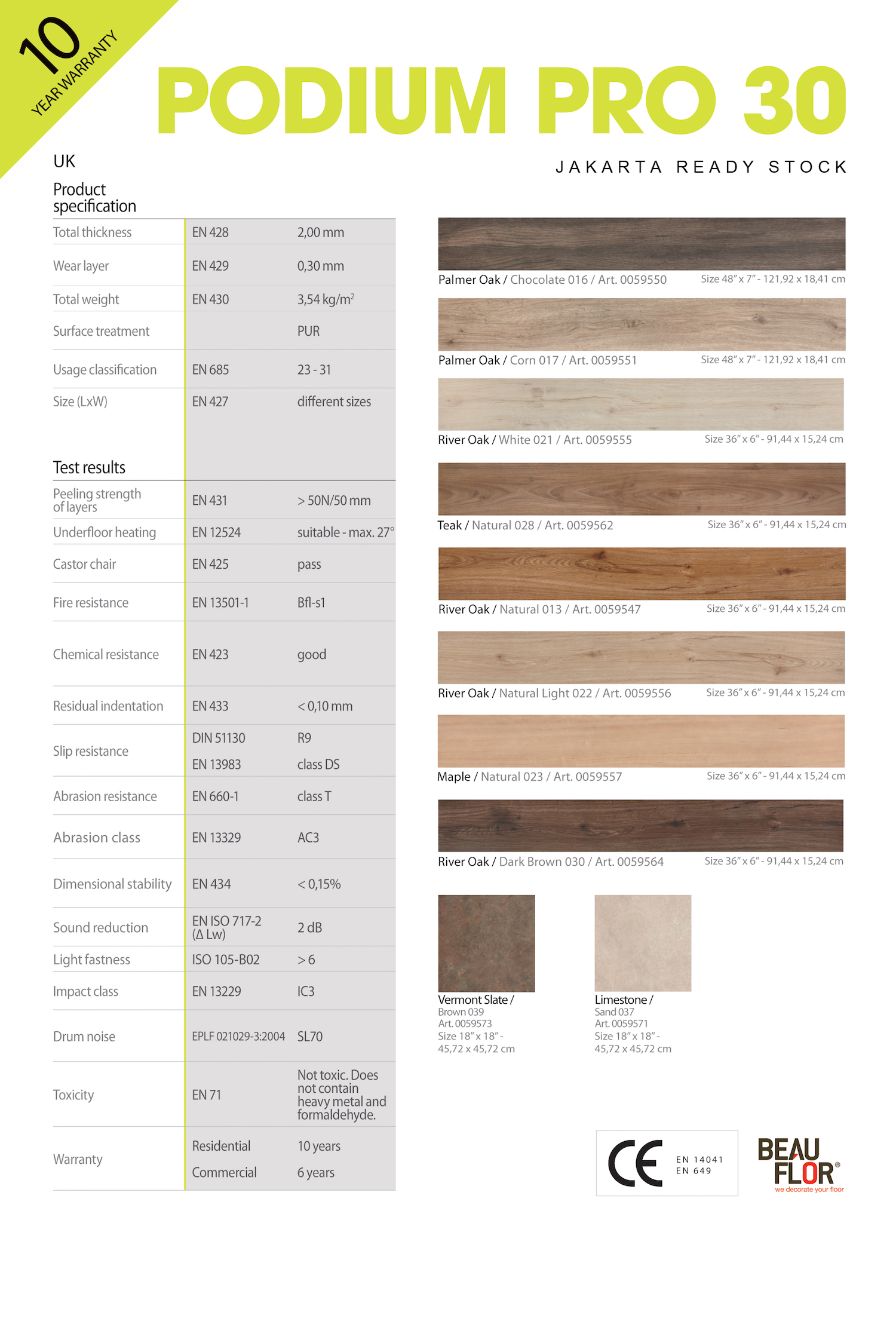 type: Podium Pro 30 with 0.3mm wearlayer 2mm thickness material